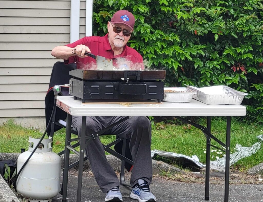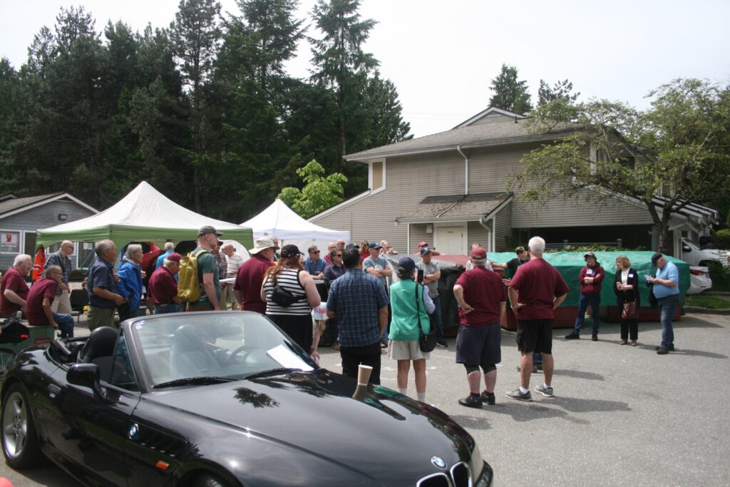 Under clear skies and with the smell of barbecue in the air, about 150 guests gathered Saturday afternoon to mark a major milestone: the 10th anniversary of the Coquitlam Men’s Shed—one of the very first Sheds established in British Columbia. The celebratory BBQ event took place both inside the Shed and outdoors in the parking lot, where a collection of vintage cars (click for video) drew admiring visitors and added a classic touch to the festive atmosphere.