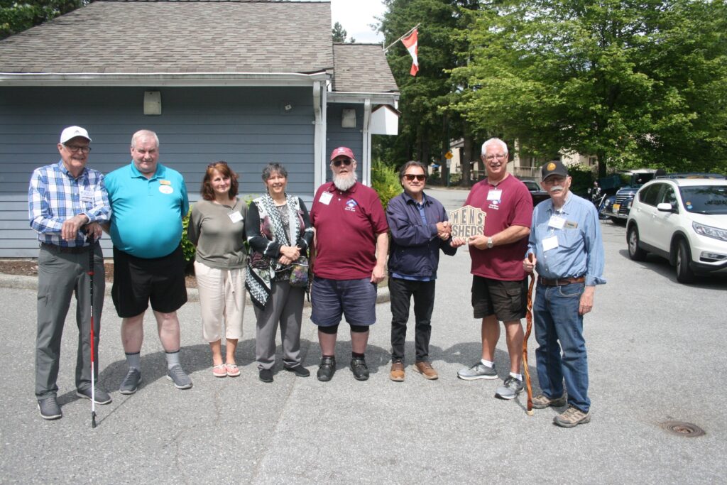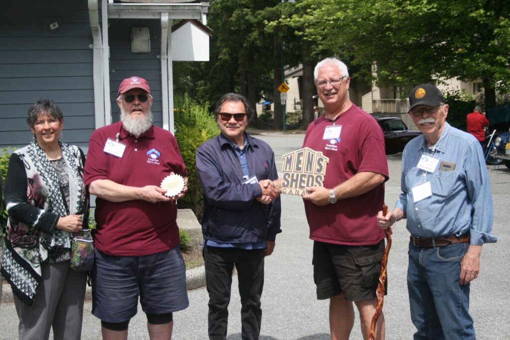 - Jan Fennema, President of the Men’s Shed Association of BC, along with his wife Audrey, a committed contributor to the Men’s Sheds Canada Board. Also representing the provincial board were Varouj Gumuchian, Chris Staddon, and Curtis Quinn, a member of the Coquitlam Shed who played a key role in organizing the anniversary festivities.